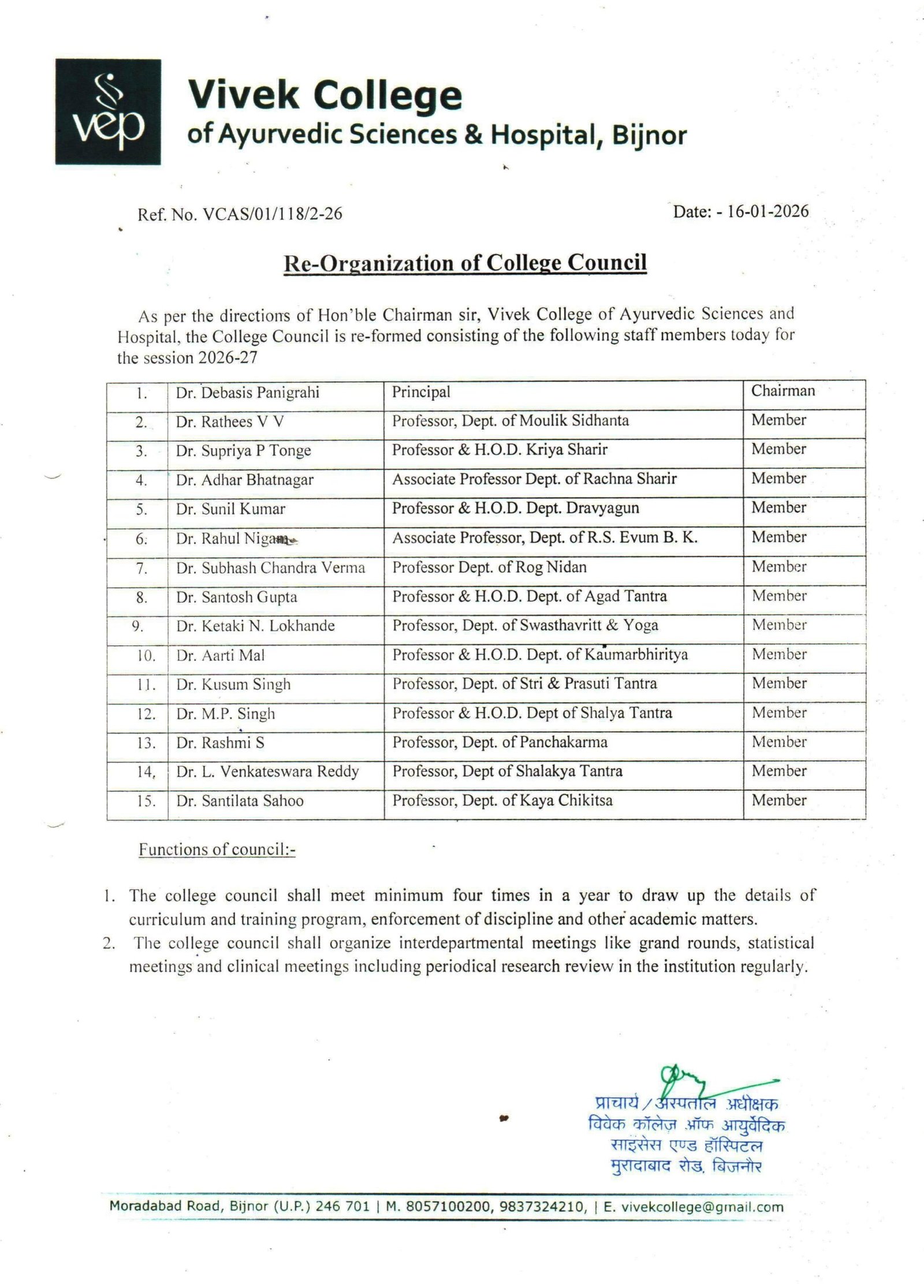 2. | Dr. Ratheesh V V | Professor & H.O.D Dept. of Moulik Sidhanta | Member |